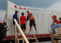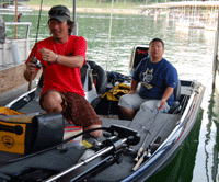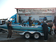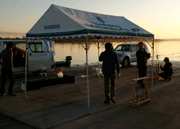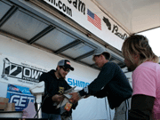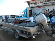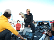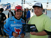 ![]() 外に出ると賞品のボートが飾ってあり、今年はバスキャットオーナーとして参加の西氏と、このボートはどっちのになるのか?と言い合い??中?? |