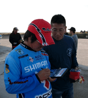![]() 酒井さんはミスターピンクこと エリートアングラーのケビンショート氏にピンクの靴にサインを貰っちゃいました! |