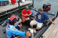 ![]() 桐山選手からも詳しい魚探などの 説明を受けています。 |