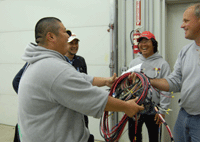 ![]() 見学最後に配線のワイヤーの重さ にびっくり!配線のしかたも1艇ずつ なんとカスタムメイド! |