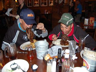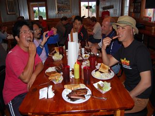試合初日の後は、リック社長行きつけのBBQのお店でディナーをご馳走していただきました。口の中でとろけるお肉でびっくりしながらもガッツリ食べてきました。 |