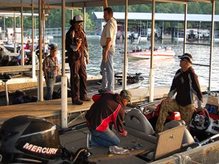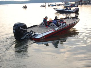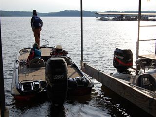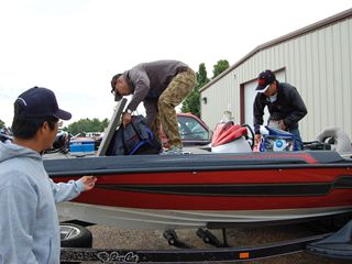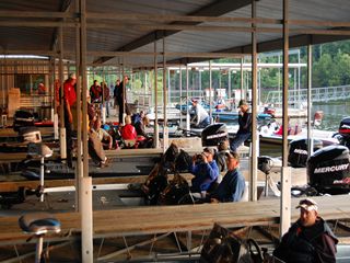 トーナメント初日。続々とボートがスタートするボートドックに集まり始めます。今日は午後から雨の予報ですがどんな釣りが展開されるか楽しみです。 |