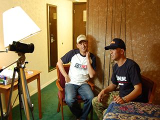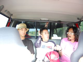 帰りの車の中では、ルアーマガジン社マイケル氏からインタビューを受けるお二人。 |