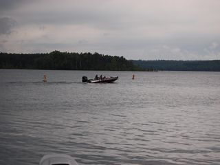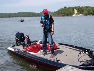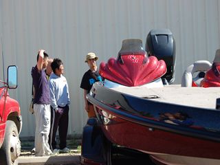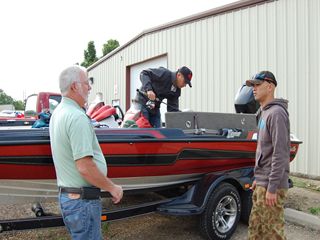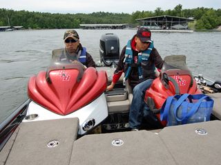 リック氏自らドライバーとしてボートを引っ張り、スロープに到着。レイクの水位がかなり高いために、いろいろと気をつけないといけないことを確認します。 |
