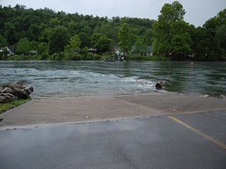 普段は穏やかな渓流ですが、やはり洪水の影響でボートスロープの半分は流れで埋まってしまっていました。 今日も雨が降り、まだまだ洪水の影響は尾を引きそうです。 |