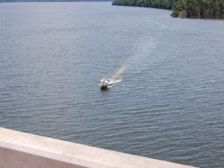 レイクノーフォークの橋からの景色です。増水の為例年より水が近く見えます。バスボートが颯爽と橋の下を通りすぎていきます。 |