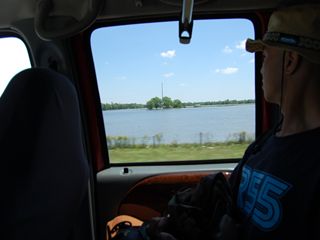途中、ミシシッピー川を横切りながら、あまりの被害の大きさにいきなり衝撃を受けた様子。 かなりの洪水。 |
