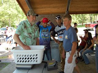 いよいよウェイインです。今日はナイスなラージマウス1本とスモールマウスのキーパー1本、合計2本、5.86ポンドの結果です。リーダーは12ポンド、10位は8ポンドなのでまだまだチャンスありです。明日に期待!! |