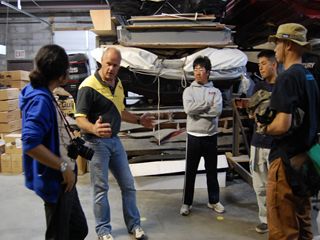 自らのこだわりと共にボート造りに情熱を燃やす リック社長は”どんな質問にも答えるよ”と熱心にお話してくださいました。 |