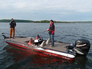 今日はナイスなスモールマウスバスが釣れたようです。増崎さんはこの旅初めてのスモールマウスバスのキーパーだそうで、これでプラクティスを含めて全種類の魚種を制覇できたそうです。 |