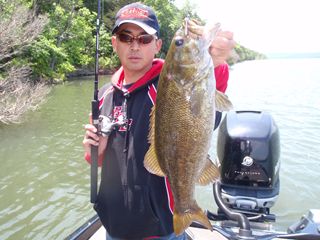 増崎さんもナイスラージマウスバスの他にも、ストライパーバス、ウォールアイ、など色々な魚種が釣れてエンジョイできたそうです。 |
